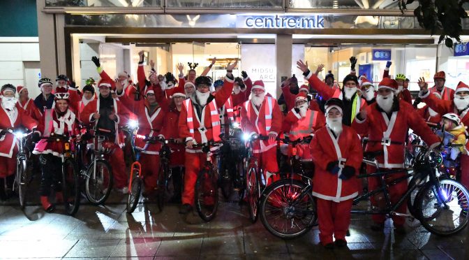 and a raffle was drawn. Then the Cycling Santas rode out to the drums of new MK band Panacea Samba.