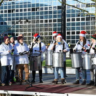 Over 200 cycling santas then set off for The MK Rose in Campbell Park, returning an hour later to enjoy the MK Brass Band and free mince pies and satsumas courtesy of Santander Cycles, who also provided 30 free hire bikes and sponsored the stage and sound. Along with free bike repairs from Cycle Saviours there was free security stamping provided by Thames Valley Police.